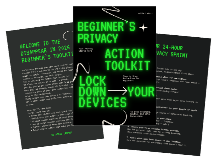 Grab the Beginner’s Privacy Action Toolkit (PDF) — a casual, beginner-friendly guide that shows you how to clean up your digital life one simple step at a time.